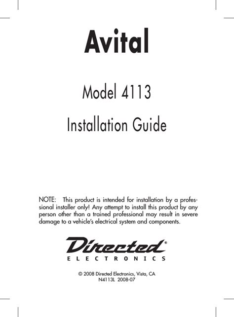 Read AVITAL 4113 INSTALLATION MANUAL Audio CD